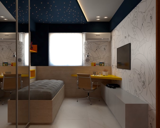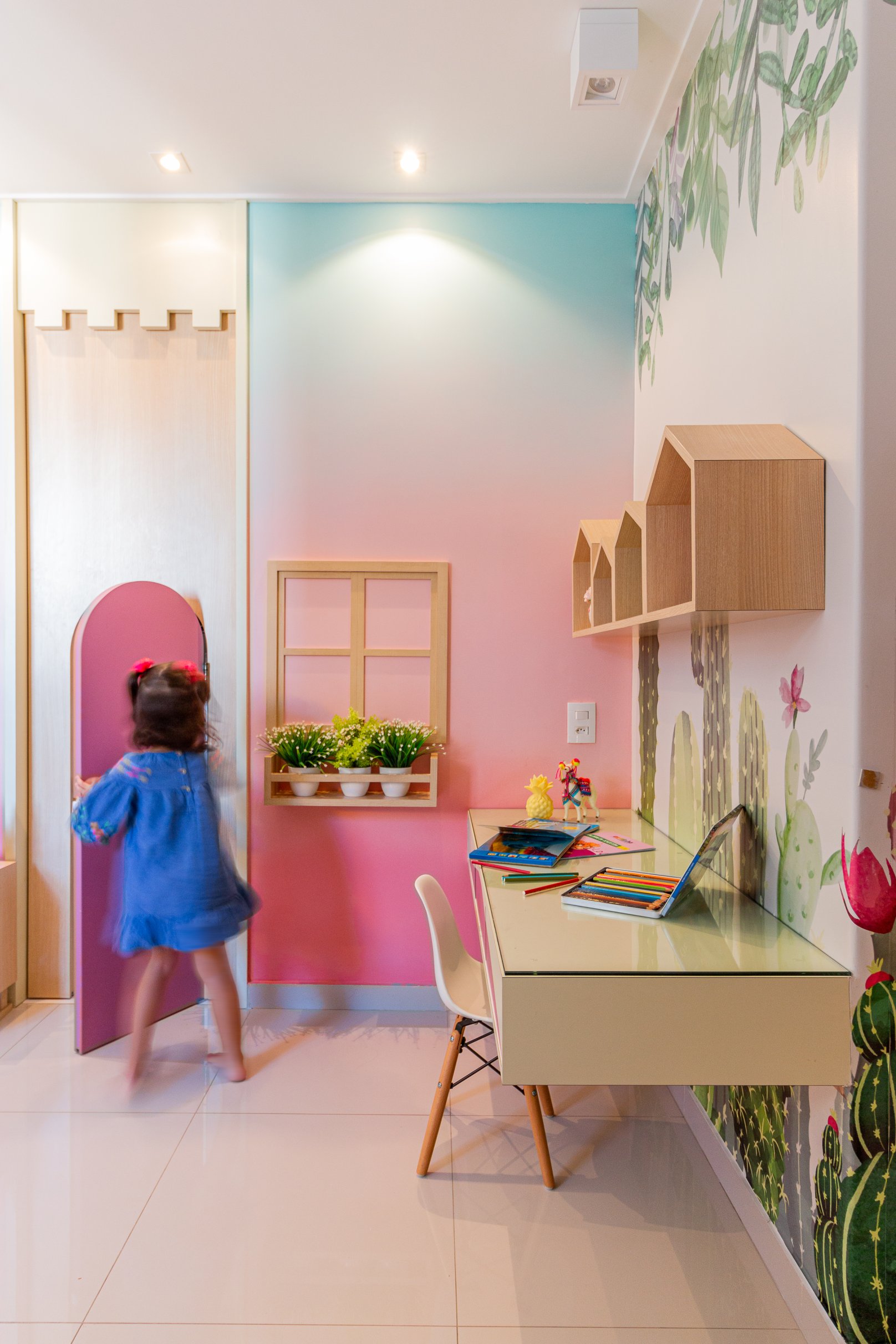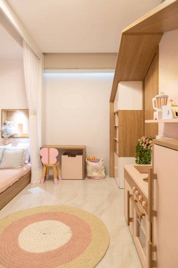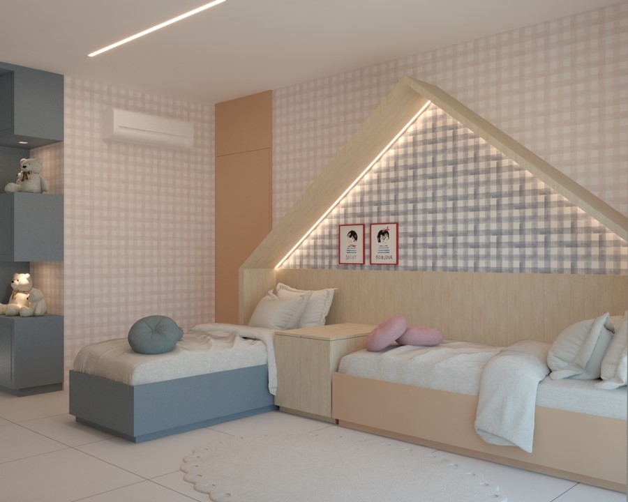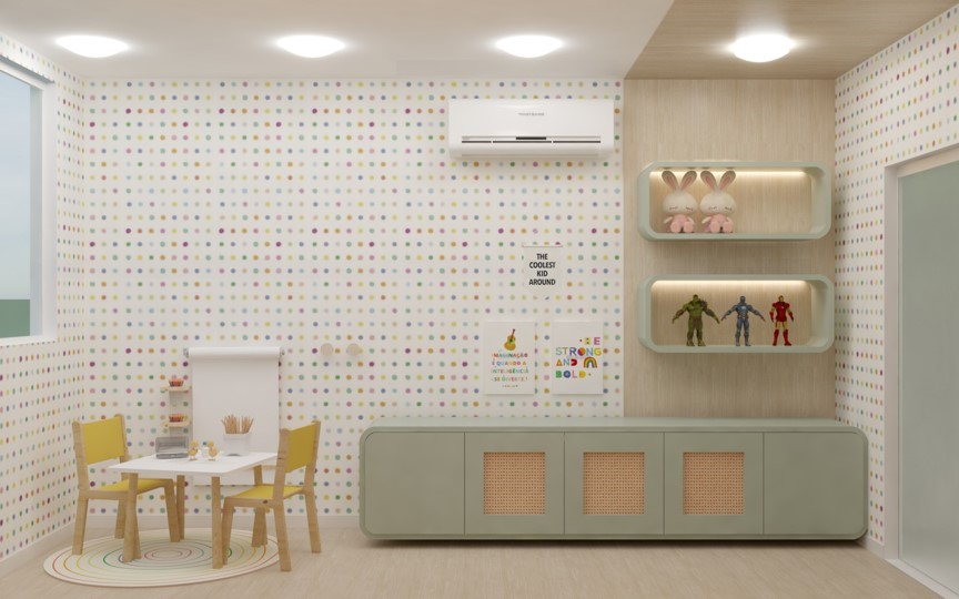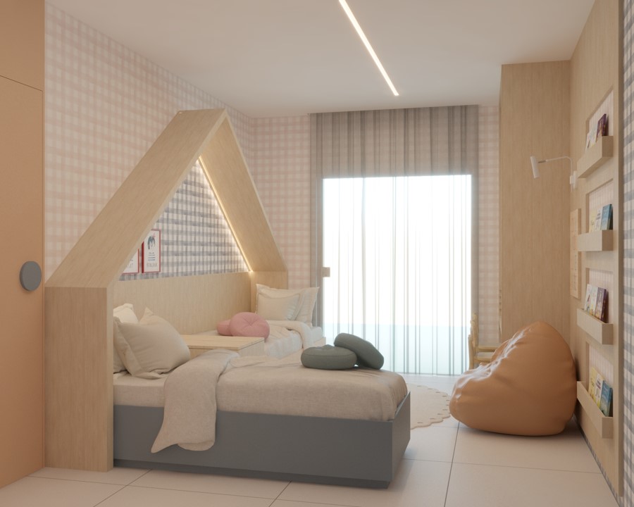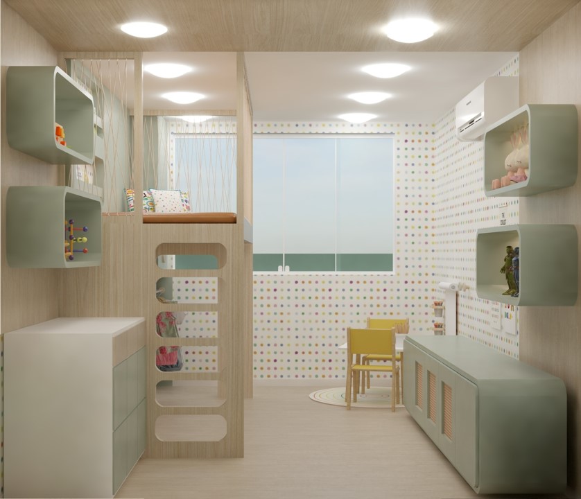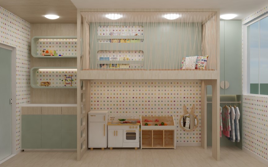 Nos projetos de ambientes infantis, a imaginação ganha vida. Brincamos com as cores, texturas e layouts para criar espaços adequados à criança. Do quarto de bebê à brinquedoteca, cada detalhe é pensado para inspirar a magia da infância.